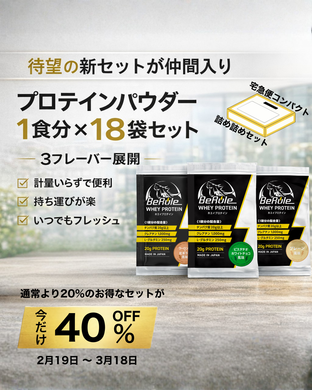 1食(30g)でホエイプロテイン20g以上